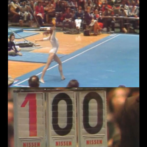 שיחה מצחיקה עם חברה שנגררה אל תוך הלילה (עדיף על טיול מצחיק למקרר בלילה) הובילה די מהר לשם נדיה קומנצ'י. תוך שני קליקים כבר היינו על הדבר הזה: סרטון עם צבעוניות ופוקוס שיש להשיג רק ב-1976, ובו נדיה, המתעמלת הרומניה הפנומנלית, אז רק בת 14, מבצעת באולימפיאדת מונטריאול תרגיל מושלם לכל הדעות, ומקבלת לראשונה בתולדות התחרות אי פעם – ציון עשר עגול. תנו לנו דקת חימום ותראו איך גם אנחנו מפתיעים עם פליק-פלאק-בורג-כפול וגבס.
