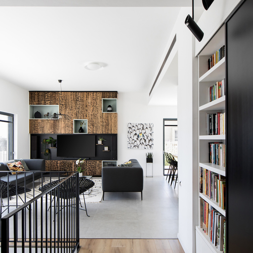 אם חד הורית ובנה, עברו מתל אביב – אל בית בן 4 חדרים, המתפרש על פני 120 מ"ר, בקיבוץ כפר החורש שבשולי עמק יזרעאל; וביקשו להשקיע בעיצוב מפנק שיותאם לצרכיהם ולטעמה המובחן והמשובח של בעלת הבית, שידעה לכוון לרצונותיה המדויקים. כך, ובתהליך שיתופי ונעים, תוכנן ועוצב בית יפהפה בגווני שחור-לבן עם שילובי עץ, וזריקות-צבע. קיר הכח שבסלון בעל התקרה הגבוהה, שולב עם חיפוי עץ ייחודי, שעבר תהליך השחרה מעניין ומוסיף נוכחות מרשימה. מקלחת הילדים עוצבה בבחירות שובביות עם קריצת-חיוך, תוך שימוש במוטיב נקודות ועיגולים בגדלים שונים. בחדרו של הבן הושקעה מחשבה מקורית על שולחן העבודה, שבהמשך יכול לפנות את מקומו לטובת מסך טלוויזיה, כך שהחדר גדל עם צרכיו. ביחידת ההורים עוצבו ארון בגדים בעומק מלא, לצד ארון אקססוריז – דרכו נכנסים לחדר הרחצה. כך מעצבים בית של הגשמת חלומות.