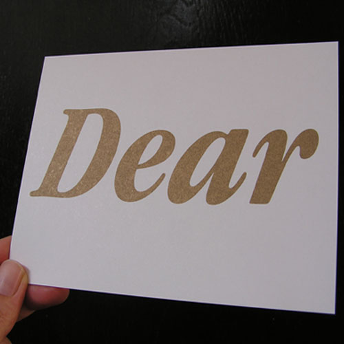 כל זה הפך לנחלת העבר ביום שקלטנו את כרטיסי הברכה שעיצבה נעמה עירון, מעצבת עצמאית שלמדה באמסטרדם וכיום יוצרת בתל אביב. הכרטיסים שעיצבה (שהם בעצם גלויות: צד אחד מודפס, צד אחד חלק) מסתפקים במילה אחת, מוזהבת, שלא משתמעת לשתי פנים: DEAR. אם חשוב לכם, תוסיפו את שם יקירכם אחרי ה"דיר", או SORRY ואפילו I LOVE YOU לפני ה"דיר", או את השם ג'ון, אם הכרטיס מיועד לטרקטור (וזו הלצה שרק קיבוצניקים יעריכו). ואפשר גם להשאיר את ה"דיר" נקי ויקר ויקיר כמו שהוא, ולמלא את צידה השני של הגלויה בדברי אהבה סלש התנצלות סלש איחולים מקרב לב. זה מה שיפה ב"דירים" האלה: הם מתאימים לכל הזדמנות ו(כמעט) לכל אחד, בתנאי שהוא יקר לליבכם. בין אם מתנה מצורפת אליהם, או שהם נשלחים כגלויה ממרחקים, או מודבקים על המראה או מוחבאים מתחת לפד של העכבר במשרד – אם היינו מקבלים אחד כזה, על המקום היינו נמסים. שהרי אמרו כבר לפנינו: אולי ציפיות נועדו רק לכריות, אבל דיר זה בפירוש לא רק לעיזים.