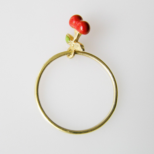טבעת זהב עם תליון דובדבן בעיצובה של מיכל אורן גרמה לנו להבין כמה שובב יכול להיות הפרי הקטן הזה