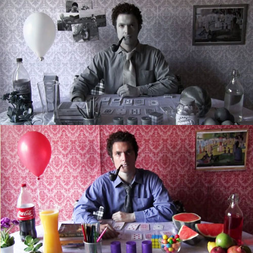 באווירת האופוריה ששוגרה אלינו היישר מהדודה מאמריקה, ובמסגרת פינתנו "איך נעביר את חמישי במהירות שיא עד שחותכים הביתה" – נתקלנו ביצירת וידאו מעולה שממחישה בדיוק את מה שאנחנו מרגישים כרגע. מדובר בקטע מיוחד במינו מאת אמן וידאו ארט ישראלי ומקורי בשם ערן אמיר, שהפך לאחרונה לסנסציית רשת בינלאומית. בקליפ האחרון שיצר (אנחנו אגב עשרים צפיות מתוך המיליון וכמה שכבר צבר מסביב לעולם), מתרחש הדבר המופלא הבא: ערן יושב בחדר ליד שולחן מלא בחפצים, שנראה במבט ראשון כאילו צולם הכי סתם באפקט שחור-לבן או עבר פילטר אפרפר כלשהוא. אך אם תחכו מספר שניות, יתחוור לכם שכל הסרטון מצולם מתחילתו ועד סופו בצבע אוריגינל, ללא שום טריק ממוחשב. כך שלמעשה כל מה שאתם רואים על השולחן ומסביבו, נבחר, הודפס או נצבע בקפידה בגווני אפור שונים ומתעתעים, כולל פניו של ערן. טירופיוס.